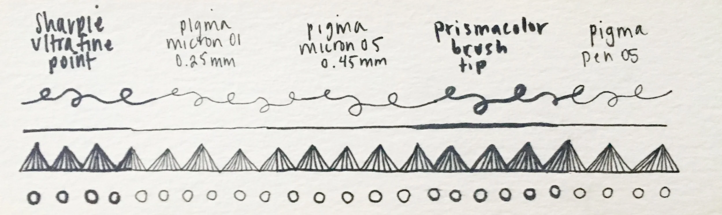 - Sakura Pigma 05: This is a Pigma pen with a plastic nib that won't bend under added pressure and is super easy to use.